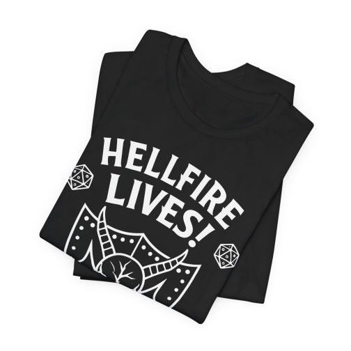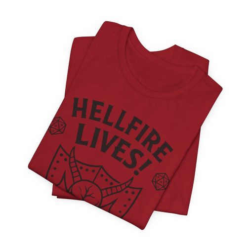 Our Hellfire Lives T-Shirt is perfect for game nights, conventions, or those spontaneous meetups with fellow players — it speaks the language of adventure without shouting.
