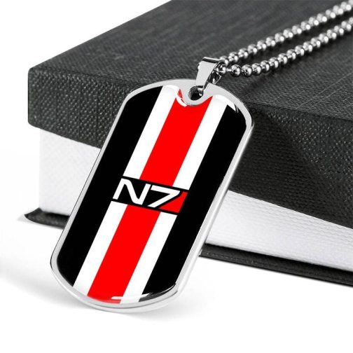 Rep your love for Mass Effect with a military-style N7 Dog Tag! Made from high-quality surgical steel and a shatterproof coating, it features the iconic N7 logo and stripe vertically down the center.