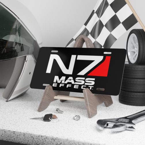 N7 Mass Effect license plate featuring the N7 and Mass Effect logos.