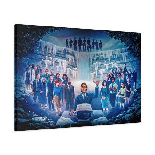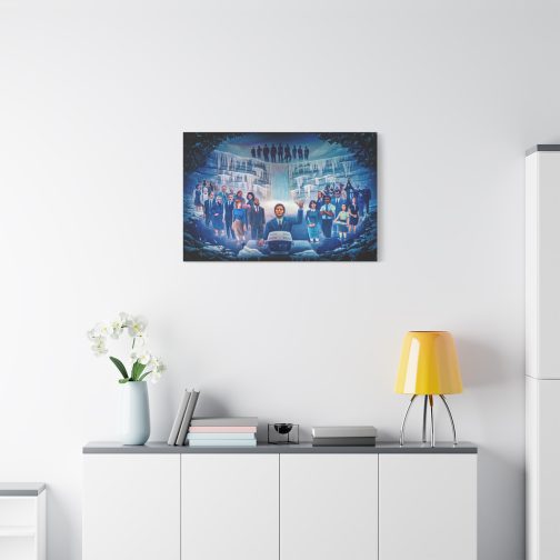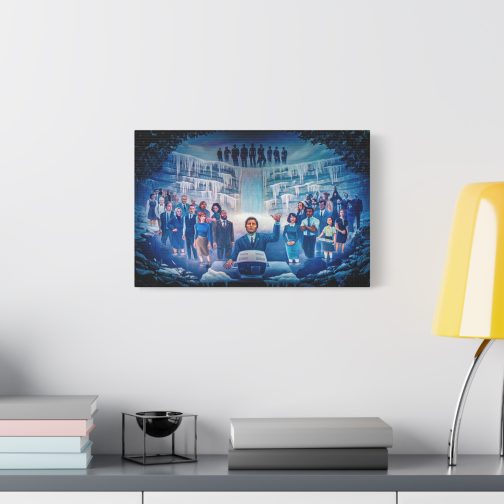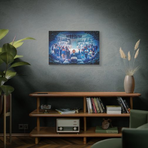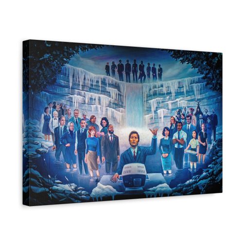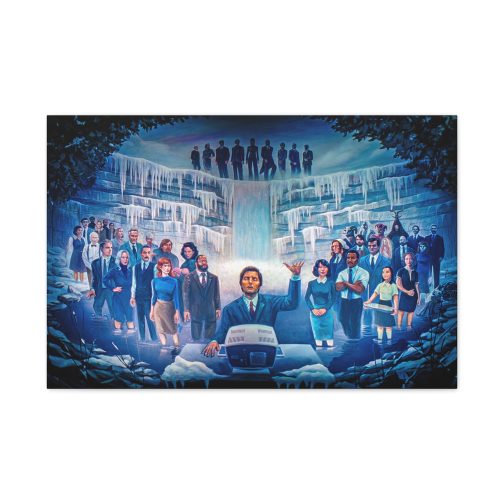 Step into the eerie, compelling world of Severance with this stunning canvas print of the iconic “Severance Painting” — a surreal, emotional portrayal of life both innie and outie. At the center stands Mark Scout (Mark S.), arms raised in solemn ritual before a retro workstation, surrounded by the full cast of Lumon Industries’ enigmatic world.