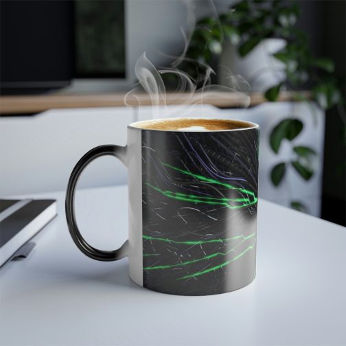 This SHODAN morphing mug changes color with its heat-reactive surface. The ceramic cup will go back to its original color when it cools down.