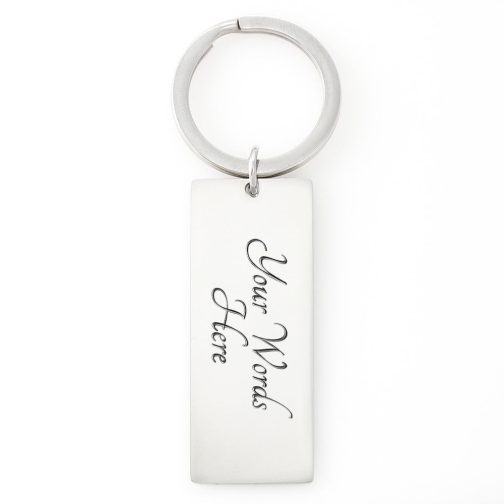 This keyring is the perfect gift choice for your loved ones. Surprise them with this personalized keyring and melt their heart! Each message is laser etched by our skilled artisans to ensure that it will never fade away, keeping your important message close to your loved one forever. We offer Domestic and Global Shipping! Product Details: Keyring Size: 1 inch in diameter Pendant Size: 2″ x 0.8″ (5cm x 2 cm). Laser engraved for maximum durability Material: Polished Stainless Steel